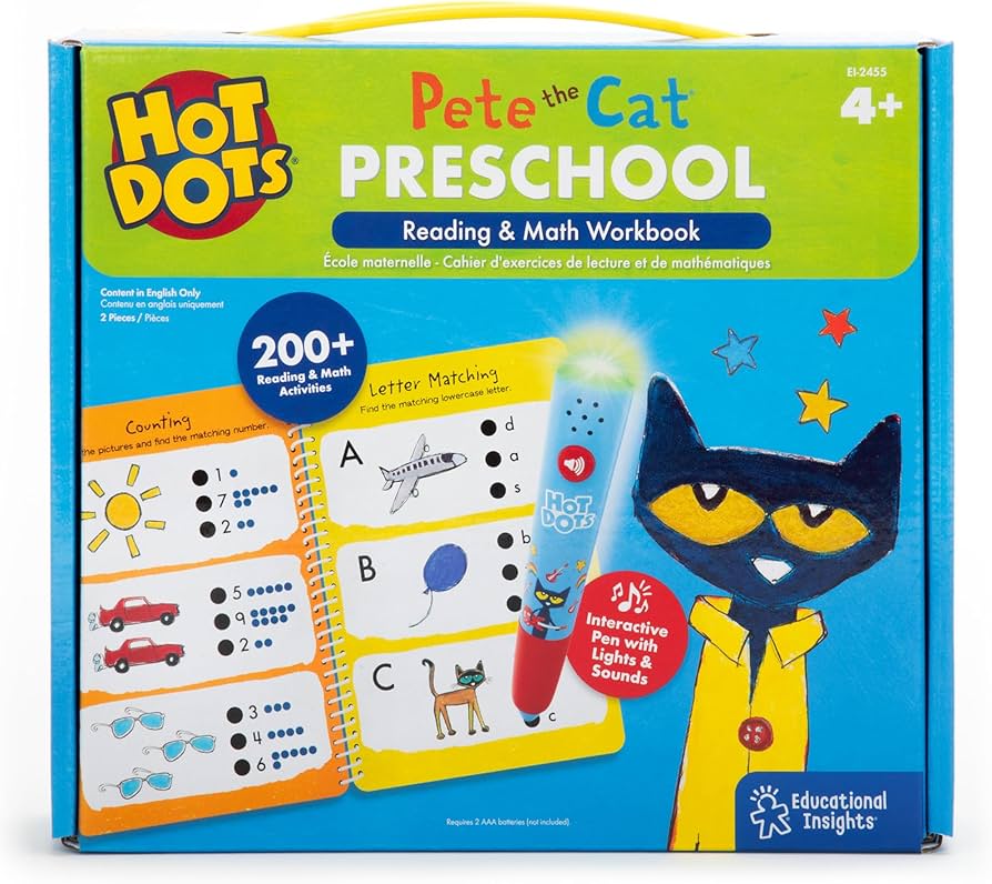 Displaying 1 of 1 2025 Title: Hot Dots, Pete the Cat preschool reading & math workbook [LANGUAGE KIT]. Other Title: Pete the Cat preschool reading & math workbook Pete the Cat preschool reading and math workbook Reading & math workbook Reading and math workbook Summary: Prepare for school with 200 interactive activities that cover fundamental reading and math skills, including number and letter recognition, spelling, counting, number words 1-10, letter sounds, patterns, sequencing, and more! Target Audience Note: Ages 4+. Genre: Real world objects. Learning kits. Language kits. Description: talking pen, workbook ; in a hanging bag. Notes: Handle with care. Web Site: cover image Click here to view the entire collection AVAILABLE COPIES: 5 # System items in: 3 Current Holds: 0 PLACE HOLD Add to My List Expand All | Collapse All FIND IT Librarian's View Displaying 1 of 1